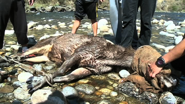 Forestry officials and locals of Haa District pulled a pregnant Sambar deer to safety from Haa River yesterday.